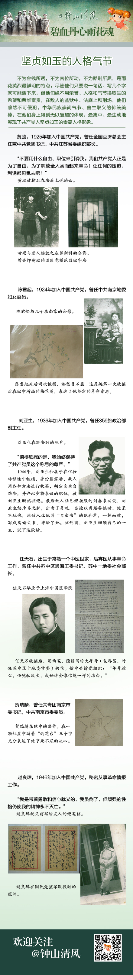 不为金钱所诱,不为官位所动,不为酷刑所屈,是雨花英烈最鲜明的特点。尽管他们只要说一句话、写几个字就可能活下来,但他们绝不用荣誉、人格和气节换取生的希望和荣华富贵,在敌人的监狱中、法庭上和刑场,他们凛然不可侵犯。中华民族崇尚气节、舍生取义的传统美德,在他们身上得到无以复加的体现,最集中、最生动地展现了共产党人坚贞如玉的崇高人格形象。