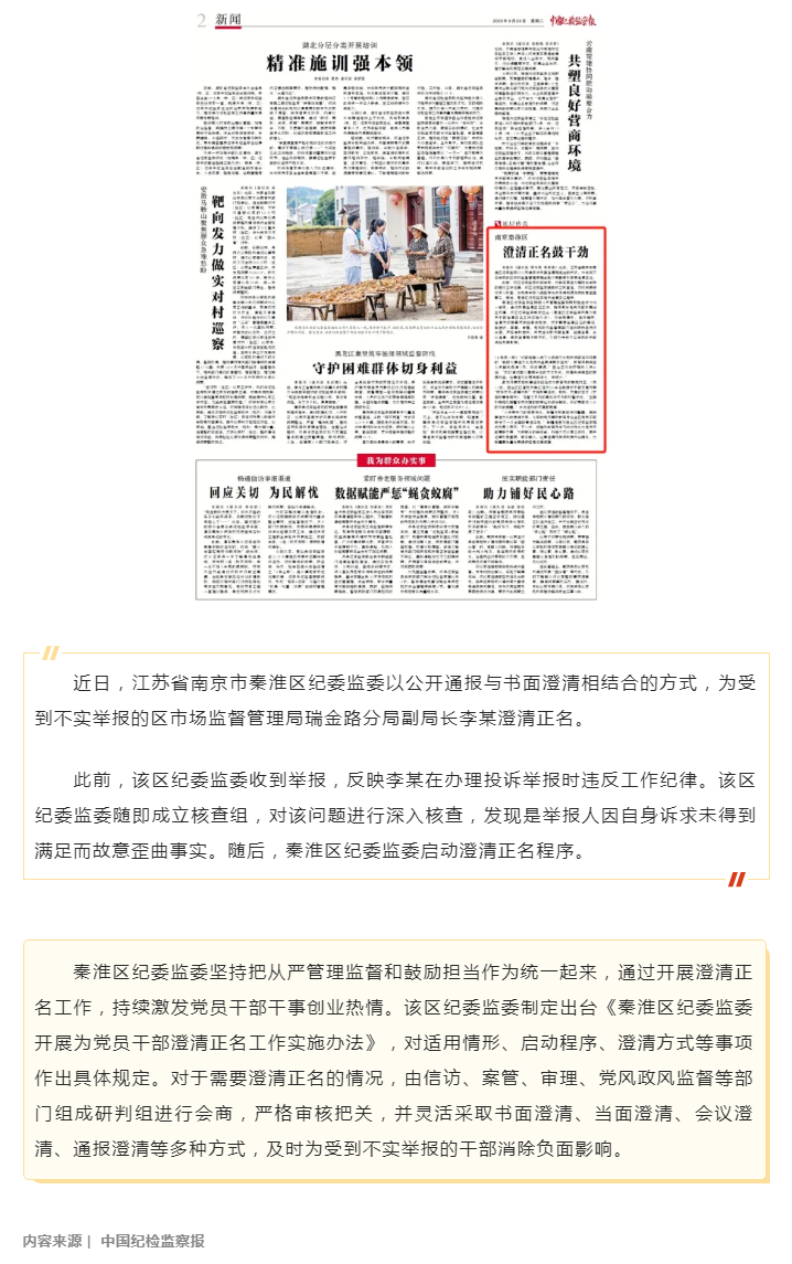 中国纪检监察报刊稿:南京秦淮区澄清正名鼓干劲