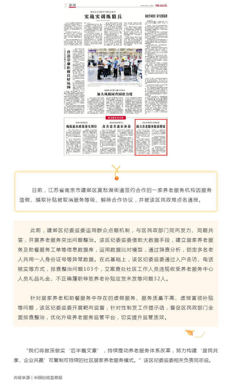 中国纪检监察报刊稿:南京建邺区深化运用群众点题机制 助力养老服务提质增效
