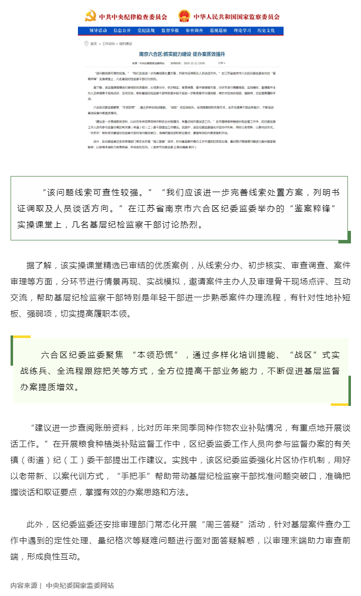 中央纪委国家监委网站刊稿:南京六合区抓实能力建设 促办案质效提升