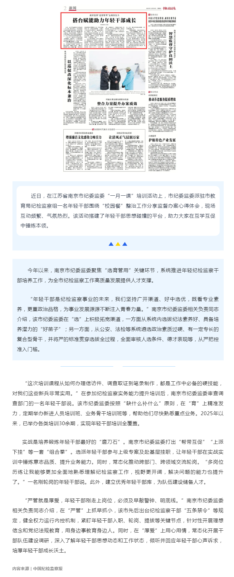 中国纪检监察报刊稿:南京坚持“选育管用”全链条发力 搭台赋能助力年轻干部成长