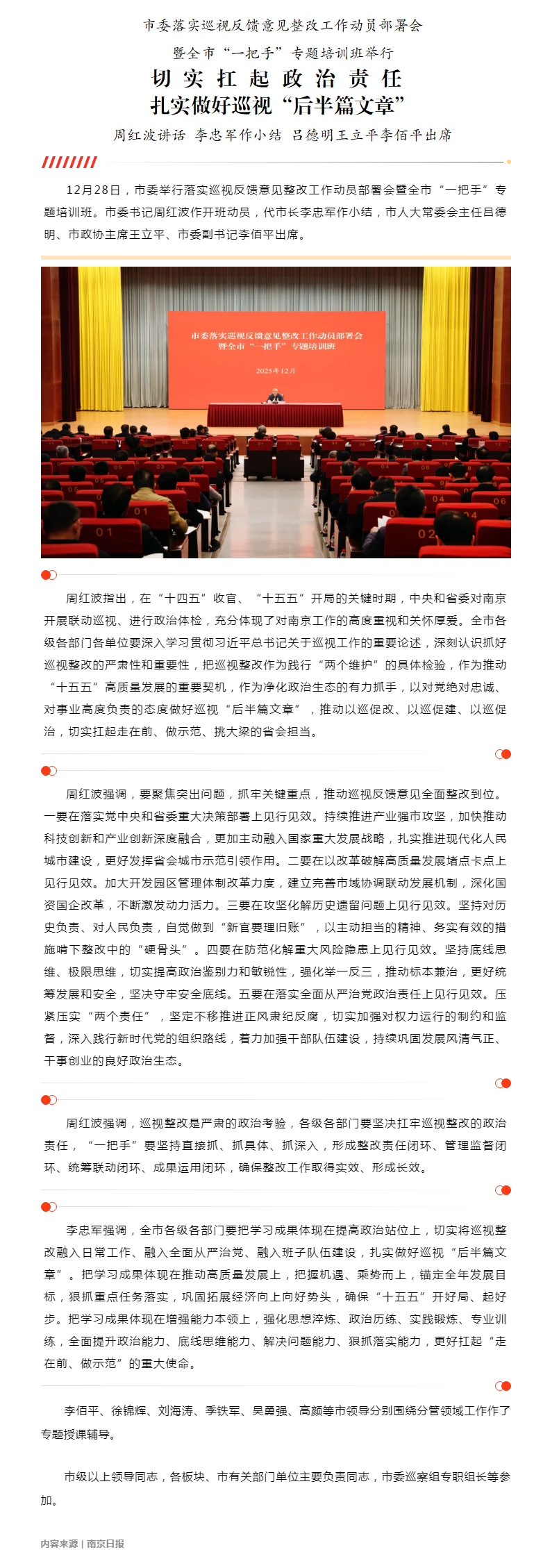 市委落实巡视反馈意见整改工作动员部署会暨全市“一把手”专题培训班举行