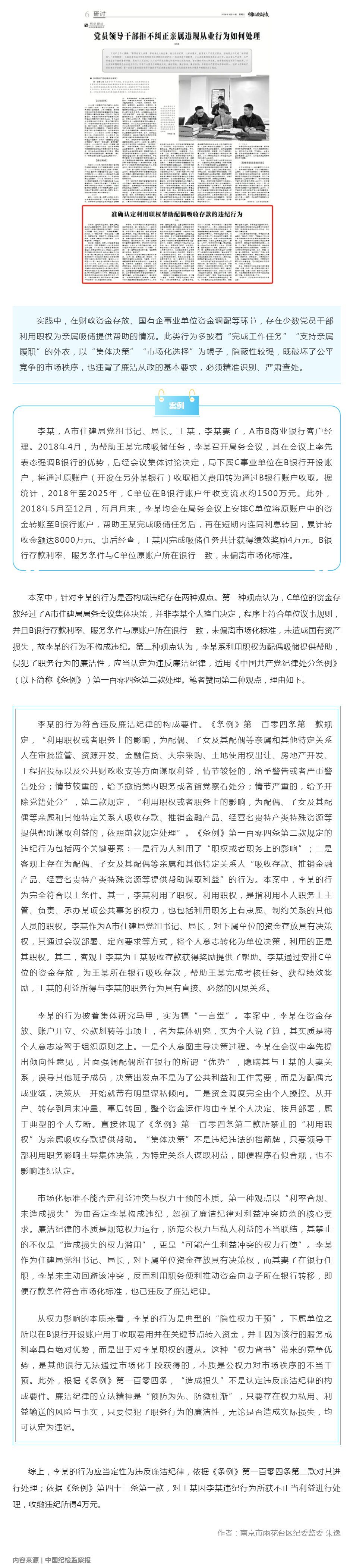 中国纪检监察报刊稿:准确认定利用职权帮助配偶吸收存款的违纪行为