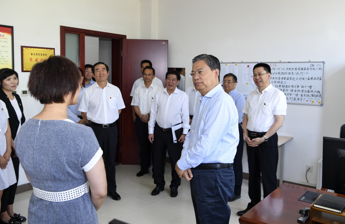 7月22日至24日,中共中央政治局常委、中央纪委书记赵乐际到宁夏调研。这是7月22日,赵乐际在石嘴山市纪委监委机关实地了解纪检监察工作和主题教育开展情况。新华社记者 张领 摄