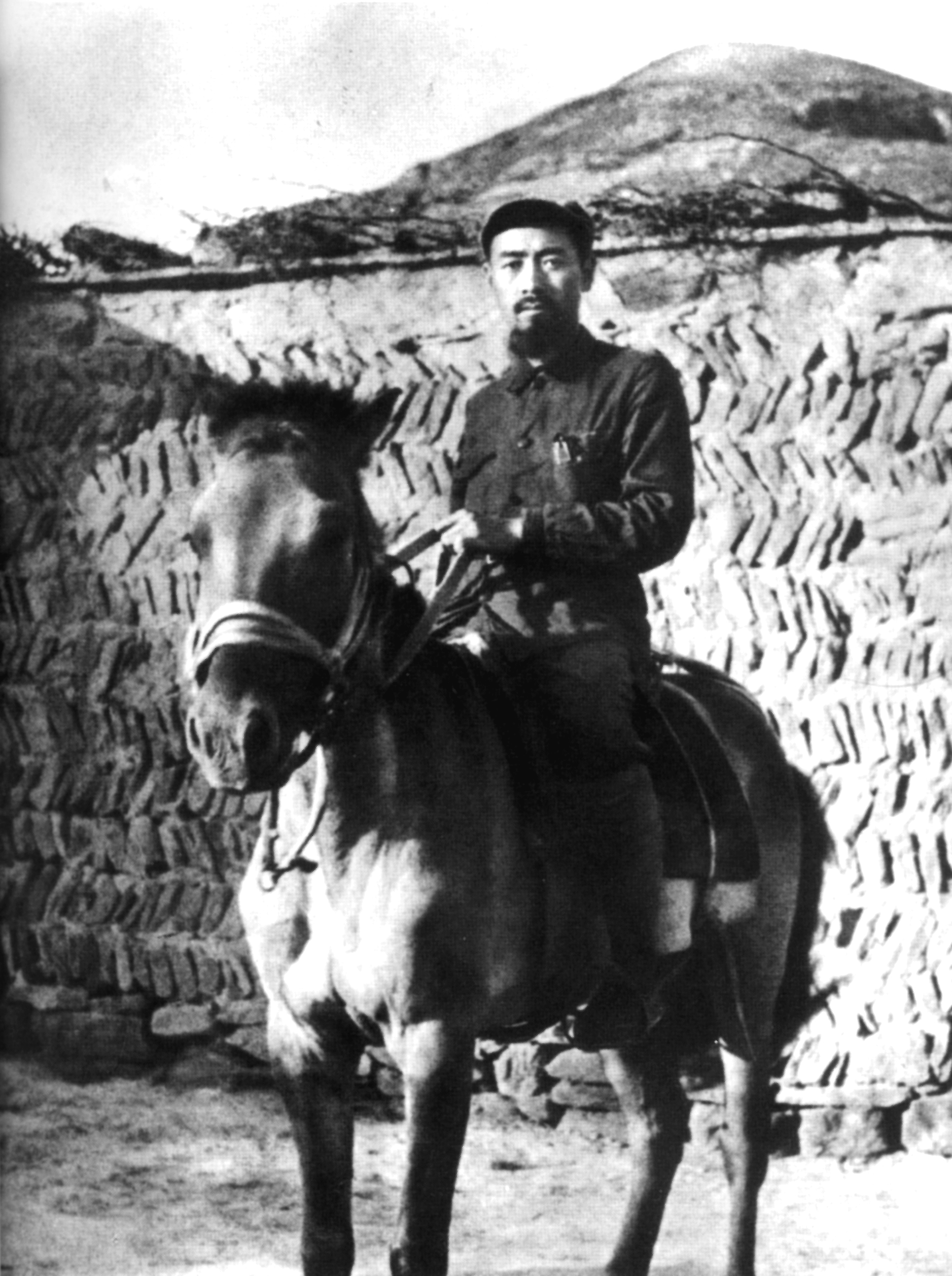1934年10月,第五次反“围剿”失败后,中共中央和中央红军被迫长征。1935年1月在遵义会议上,周恩来支持毛泽东的正确主张。遵义会议确立了毛泽东在党中央和红军中的领导地位,从而挽救了党,挽救了红军,挽救了中国革命。图为长征到达陕北后的周恩来。