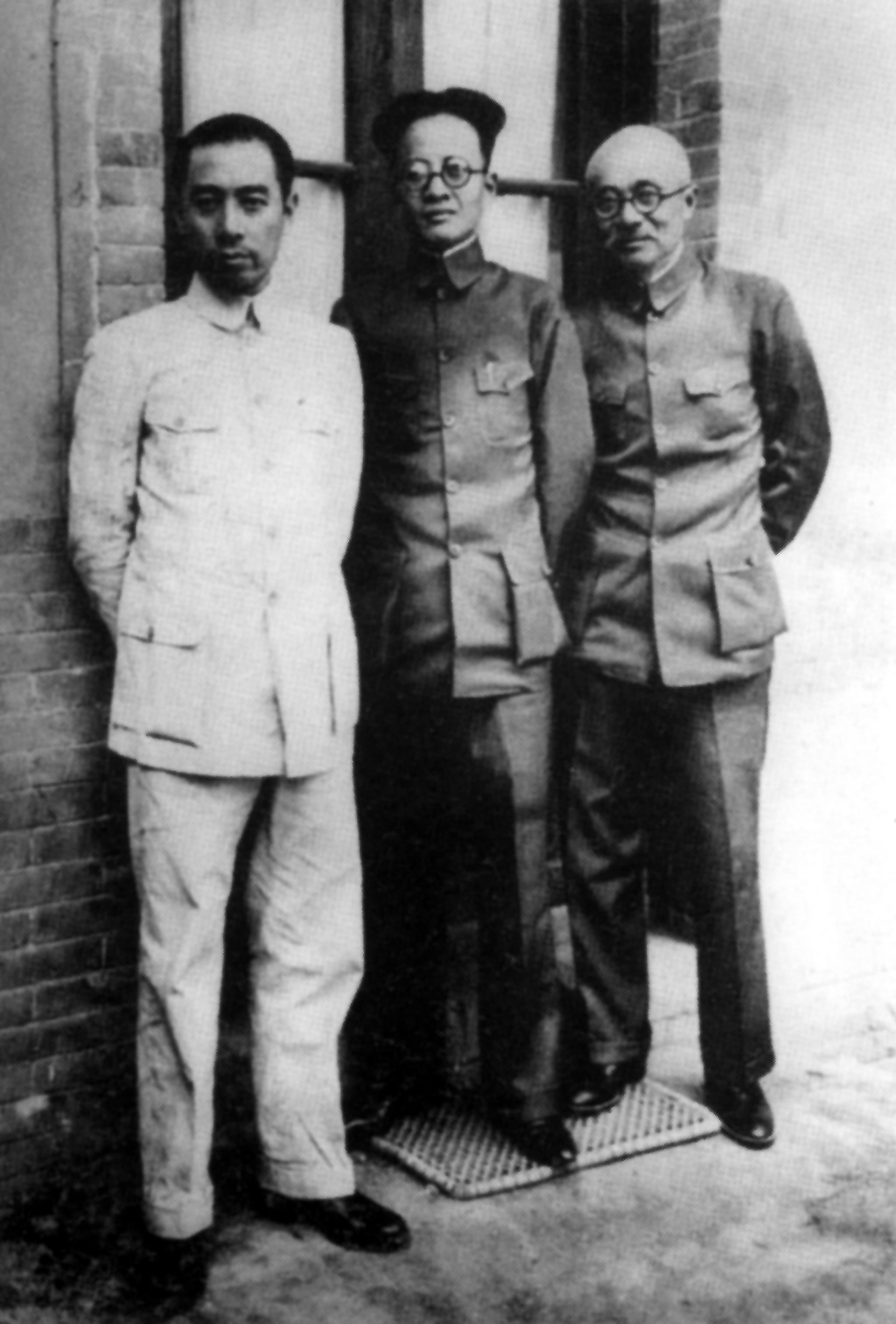 【图文资料】周恩来和秦邦宪(中)、林伯渠在庐山同蒋介石谈判后回到西安时的合影