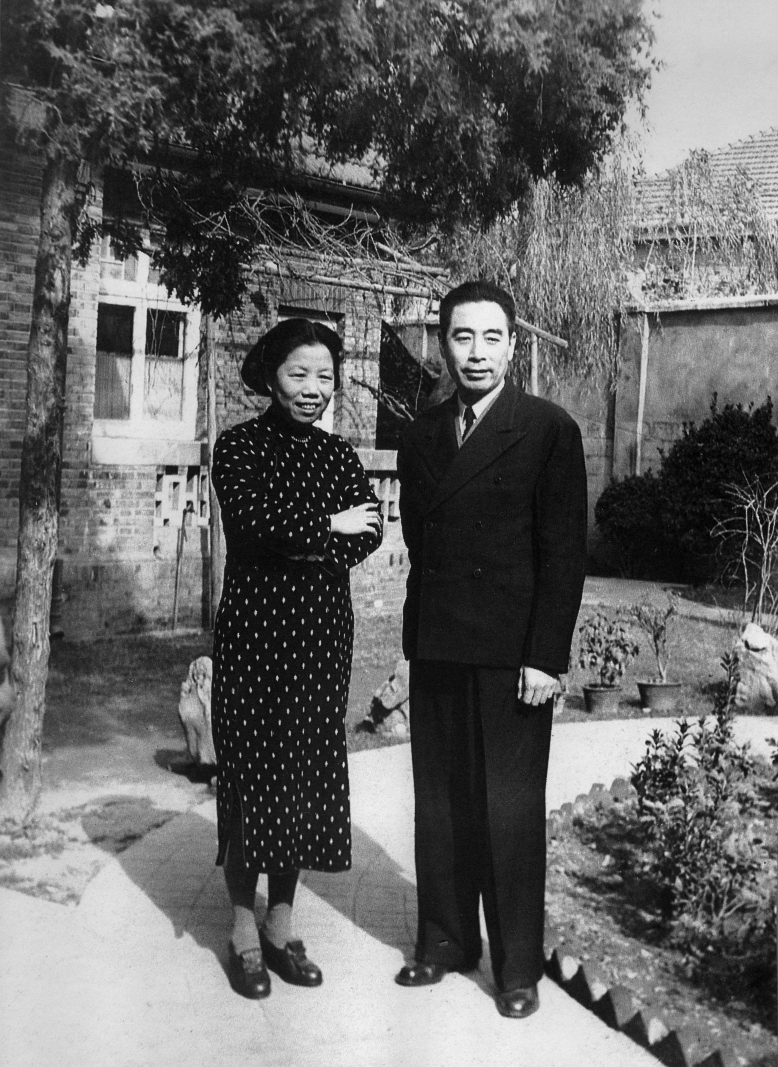 日,周恩来率领中共代表团到达南京,继续与国民党政府进行和平谈判。图为周恩来、邓颖超在梅园新村