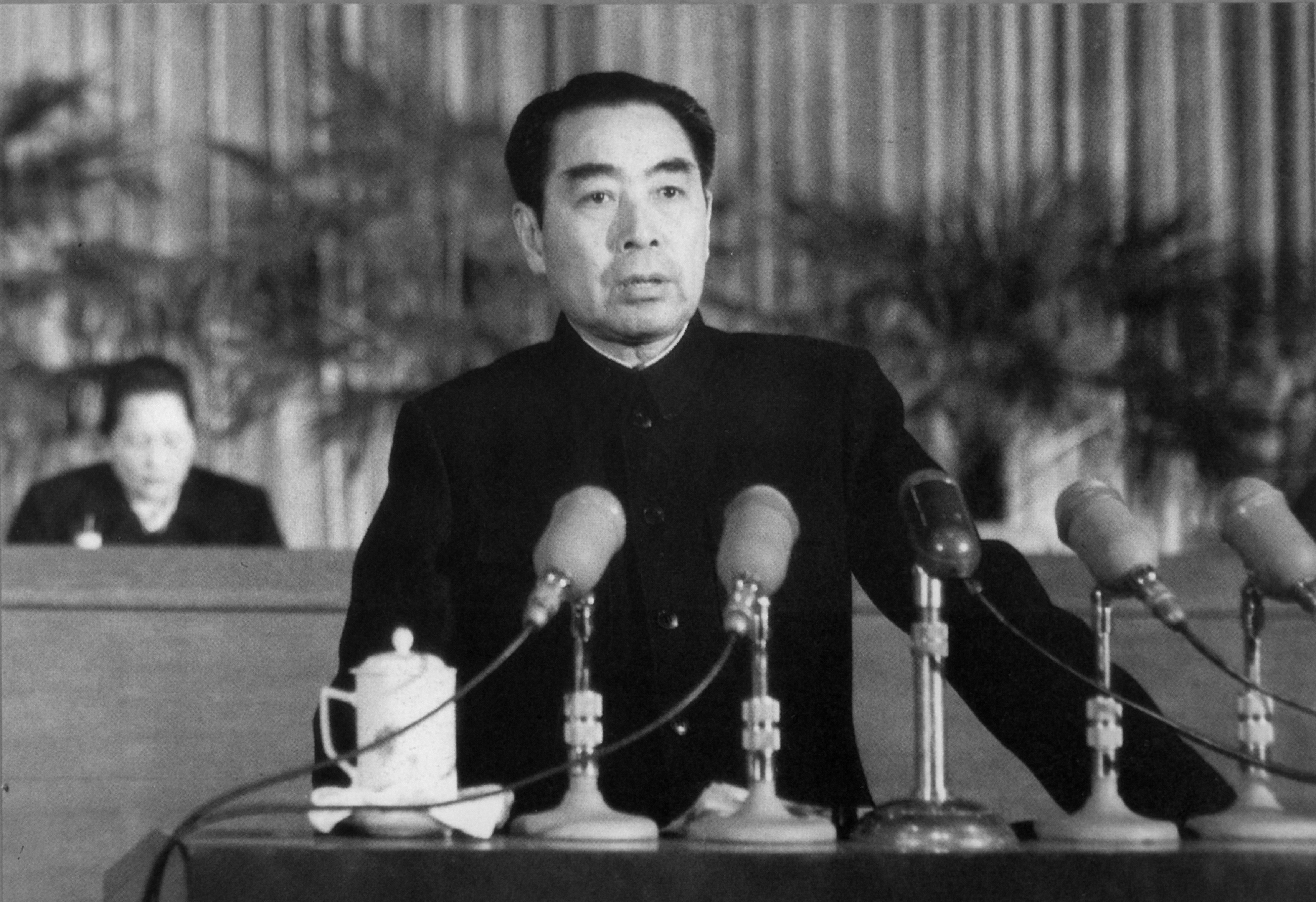 月,政协第二届全国委员会第一次全体会议在北京举行。周恩来当选为政协第二届全国委员会主席。图为周恩来在会上作政治报告。