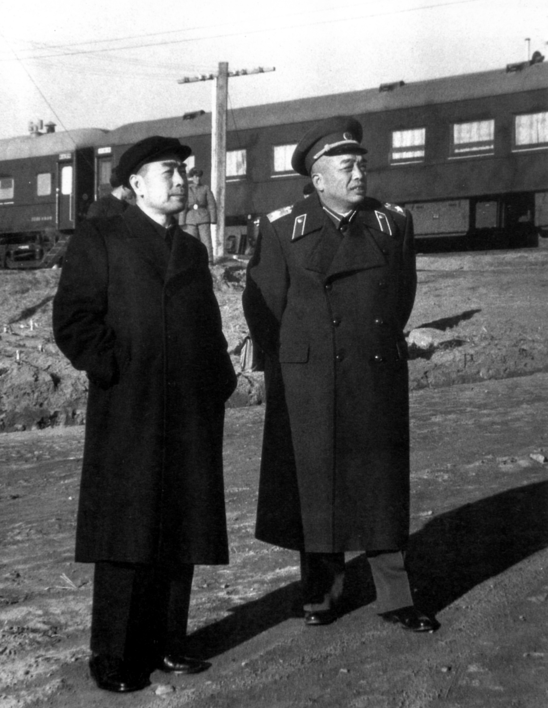 建国初期,周恩来作为主持中央军委日常工作的副主席,是我军实现现代化和正规化建设的主要设计者和组织者之一。1950年10月起,周恩来协助毛泽东指挥中国人民志愿军抗美援朝战争。图为周恩来和中国人民志愿军第一任司令员兼政委彭德怀元帅在一起。