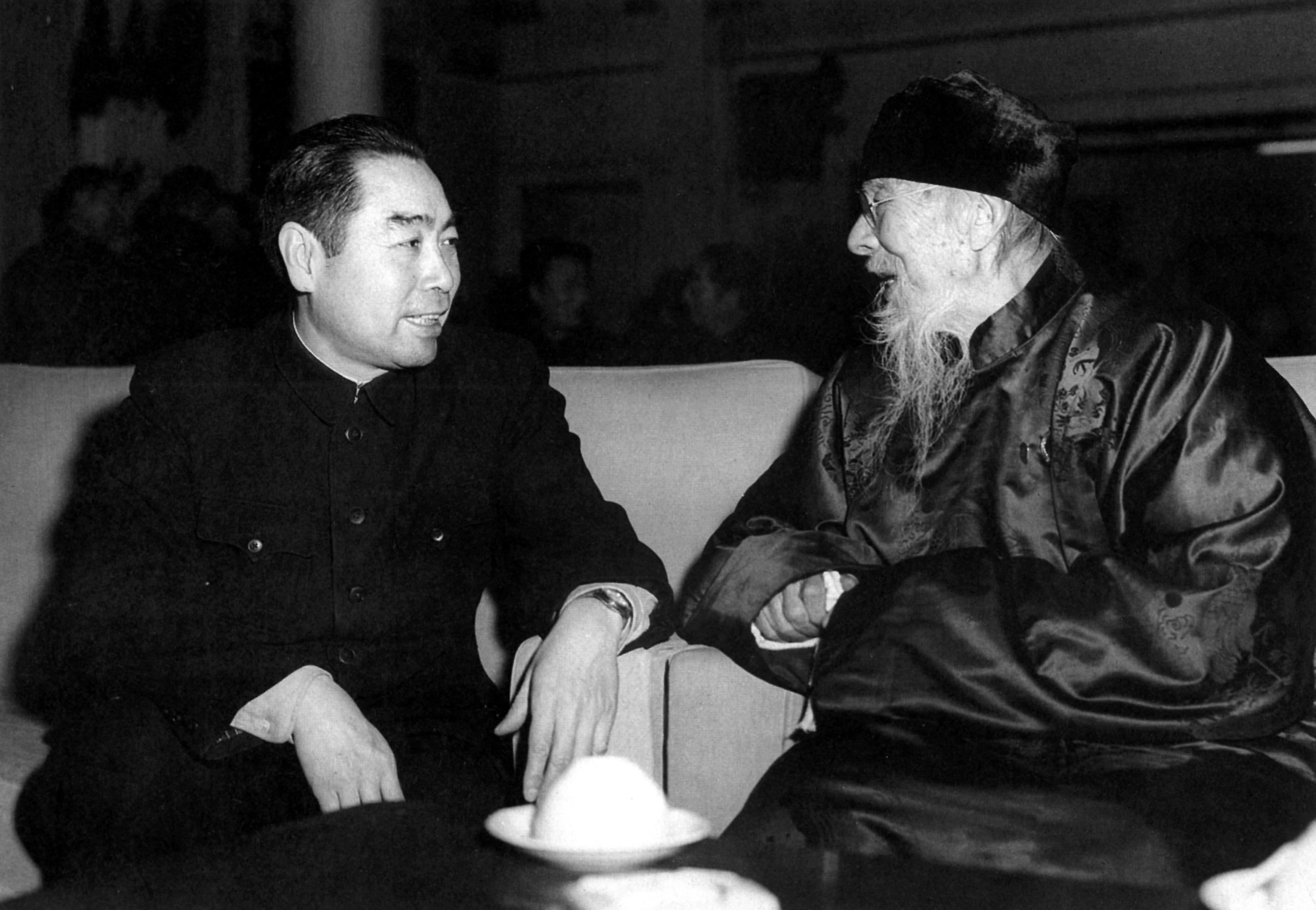 【图文资料】周恩来在庆祝著名画家齐白石93寿辰宴会上同老人交谈