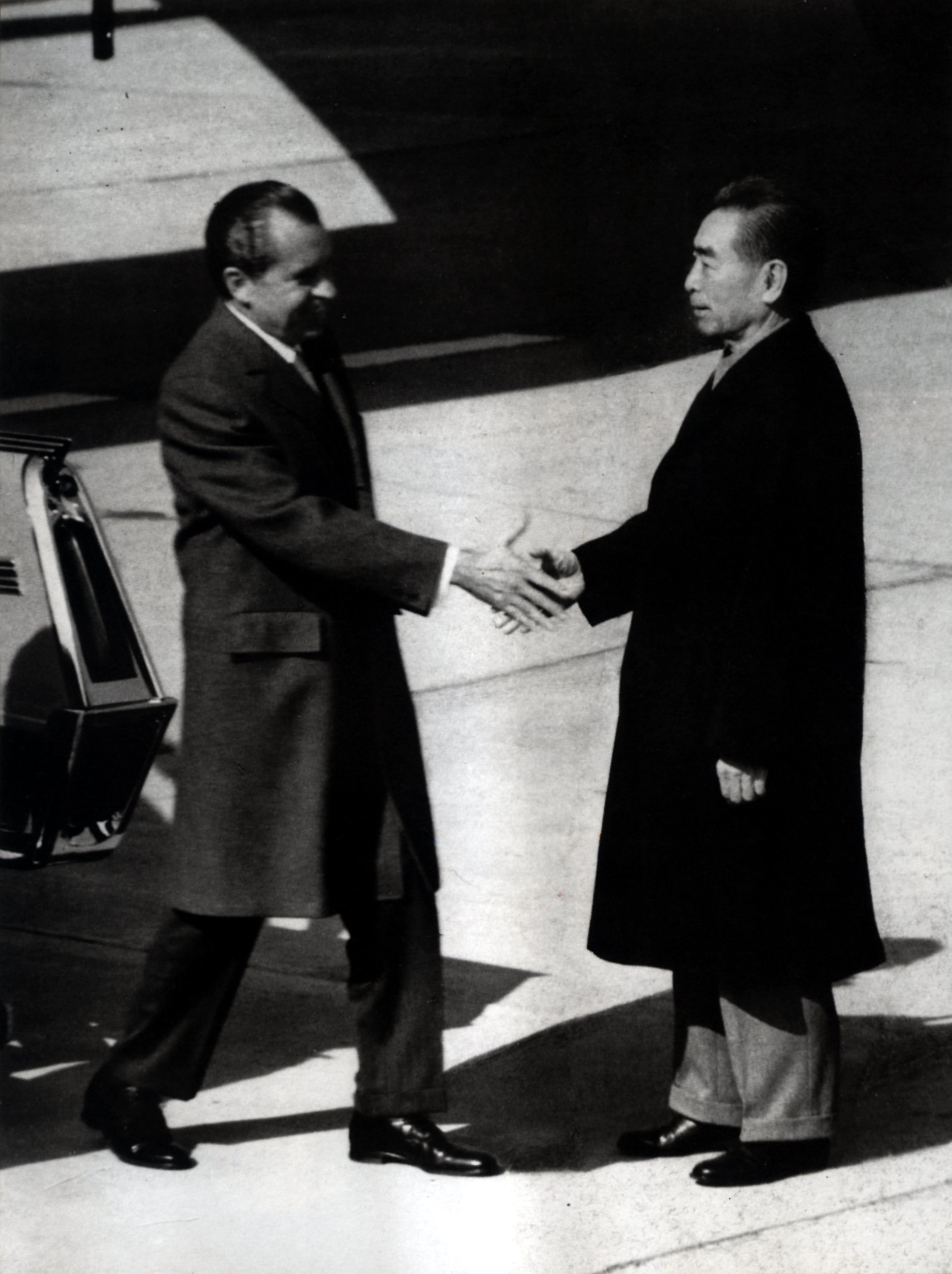 【图文资料】周恩来总理在机场迎接理查德·尼克松