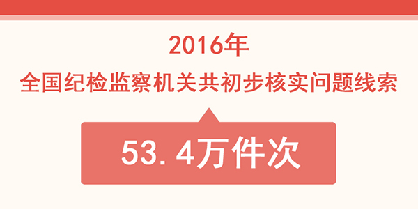 2016年,全国纪检监察机关共初步核实问题线索53.4万件次。