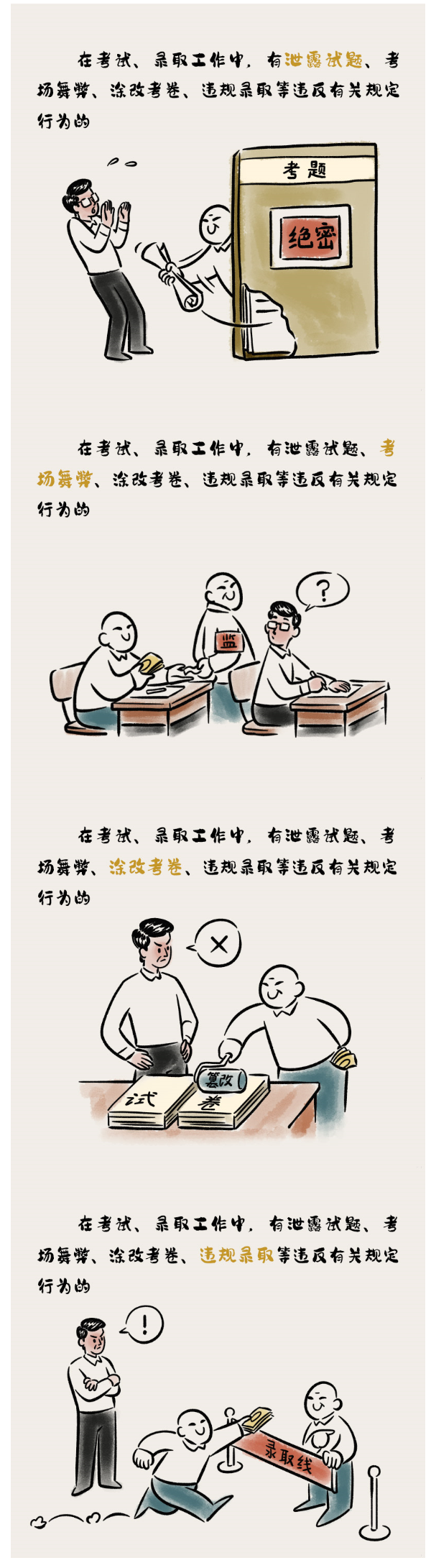 能否严格按照规定开展考试、录取工作,做到公开公正、竞争择优,关系到党和国家事业发展,关系到社会公平正义。承担考试、录取工作任务的党员、干部,必须提高思想认识,认真履行职责,严格遵守纪律规定,维护考试、录取工作良好秩序。对于违反规定者,应当按有关规定严肃处理;对于其中的党员,还应当依照《中国共产党纪律处分条例》有关规定,给予党纪处分。