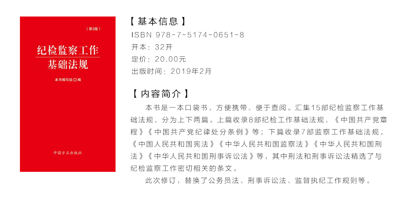 为贯彻落实中央纪委三次全会关于“不忘初心、牢记使命”主题教育以及从严从实加强纪检监察队伍建设的部署要求,引导党员干部自觉锤炼党性、增强党性修养,助力纪检监察干部加强政治建设、提升能力素质,现推荐一批中央纪委中国方正出版社出版的党性教育图书和纪检监察业务用书。