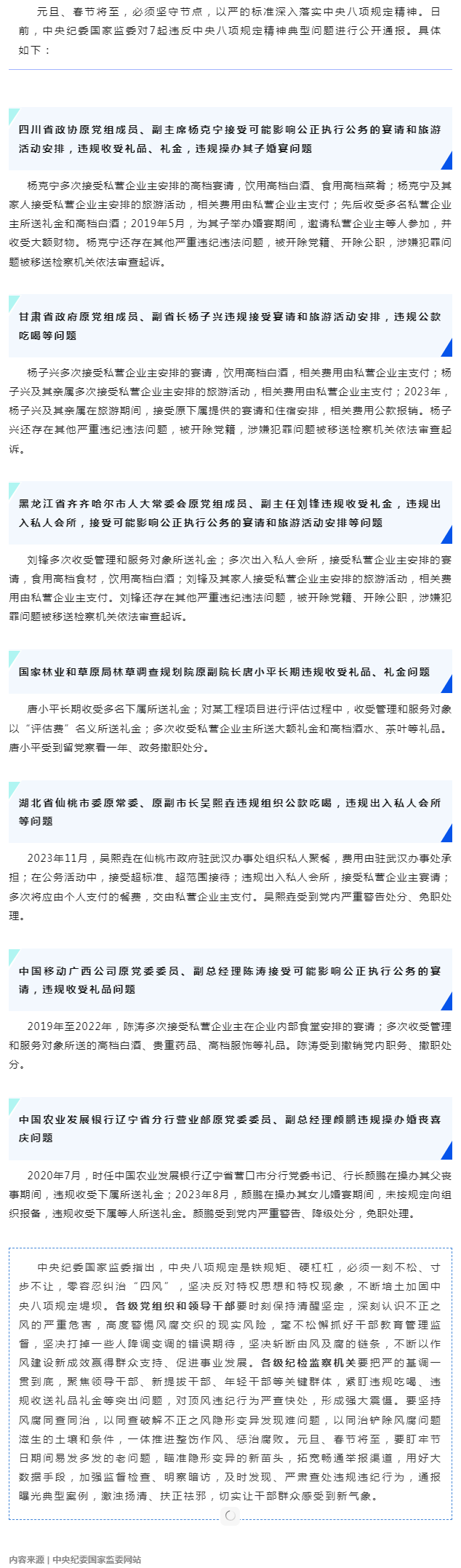 中央纪委国家监委公开通报七起违反中央八项规定精神典型问题