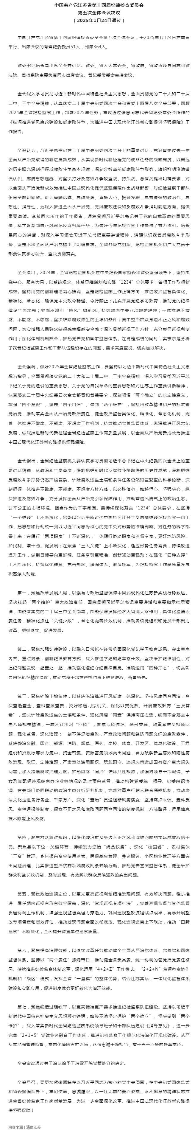 中国共产党江苏省第十四届纪律检查委员会第五次全体会议决议