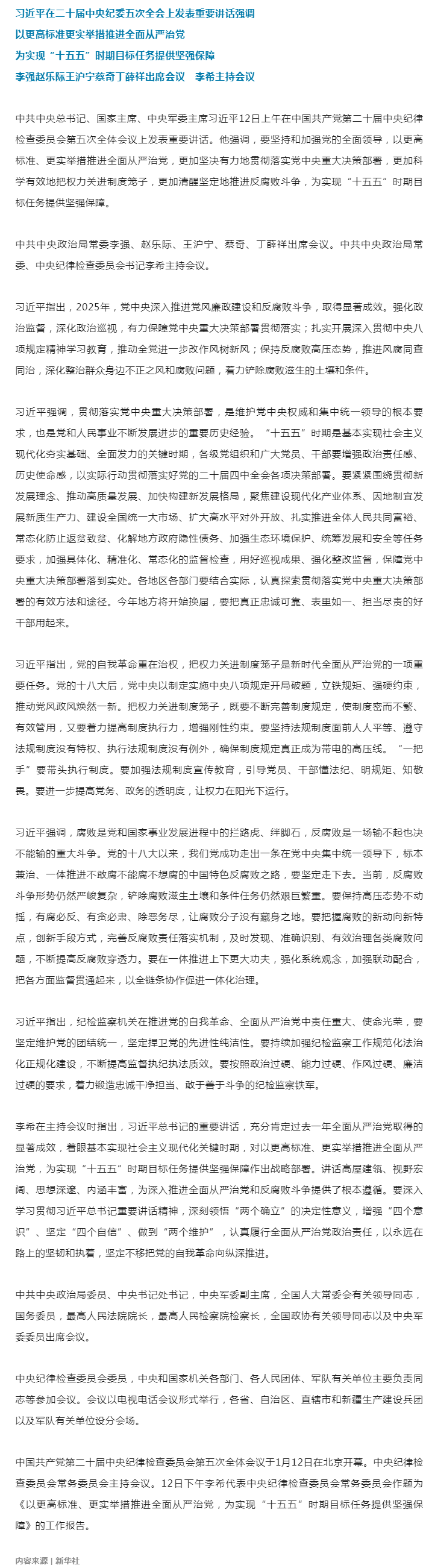 习近平在二十届中央纪委五次全会上发表重要讲话