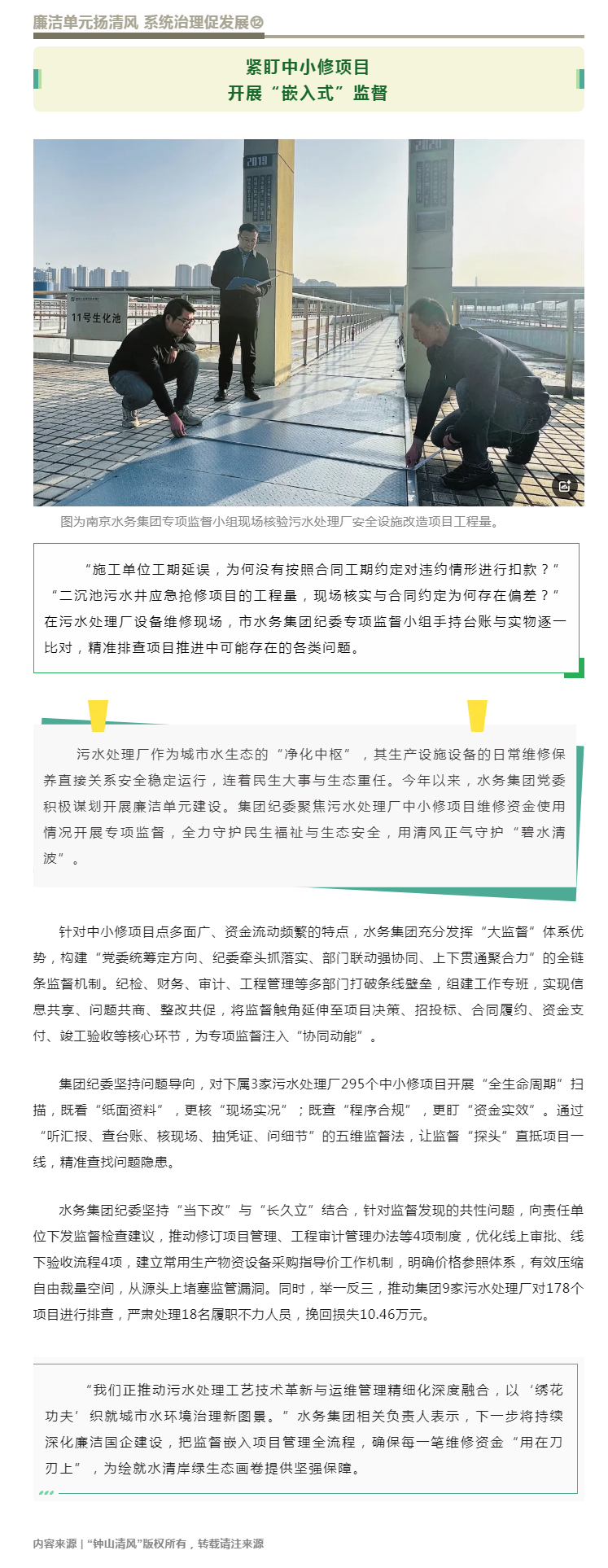 南京水务集团纪委:紧盯中小修项目 开展“嵌入式”监督