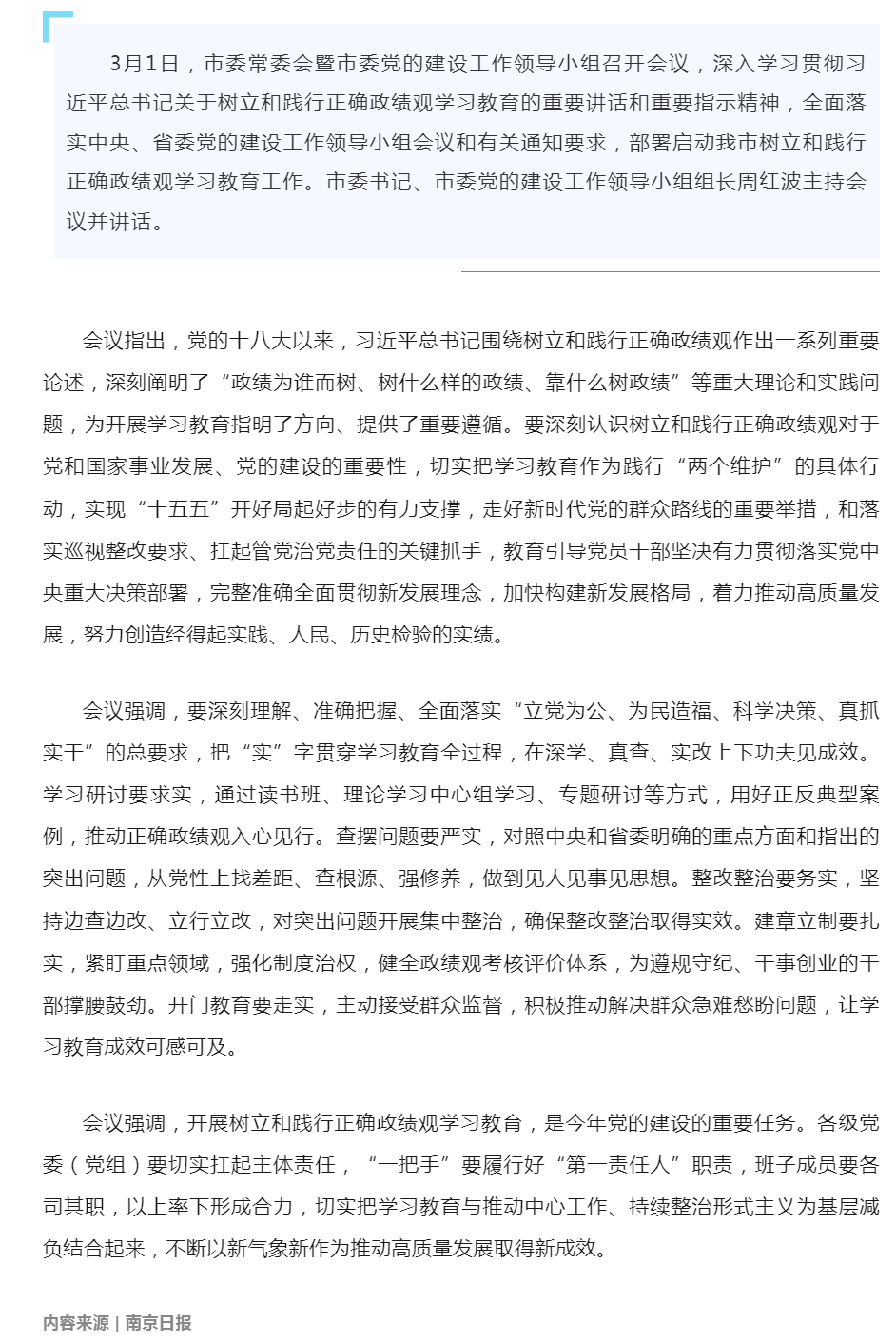 市委常委会暨市委党的建设工作领导小组召开会议 部署启动我市树立和践行正确政绩观学习教育