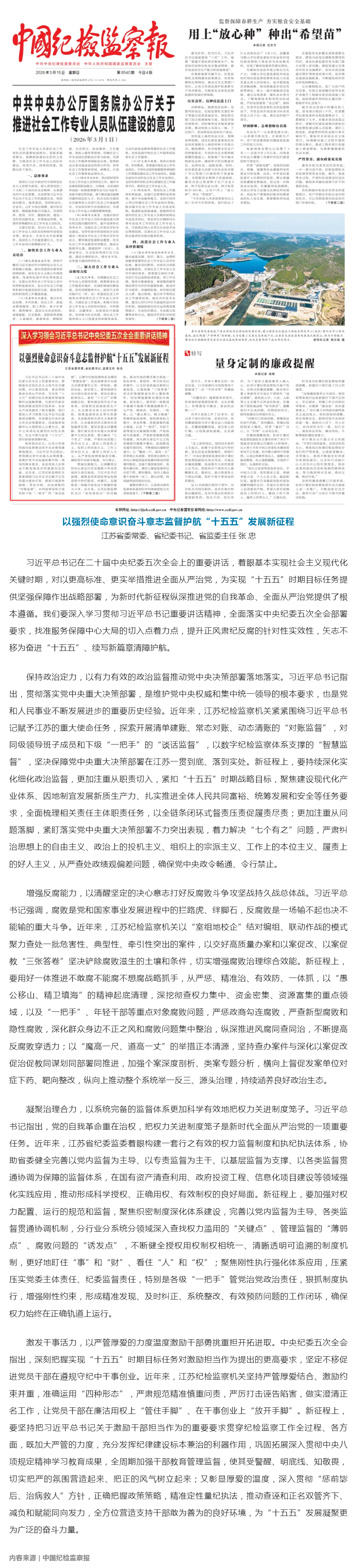 《中国纪检监察报》刊发张忠署名文章:以强烈使命意识奋斗意志监督护航“十五五”发展新征程