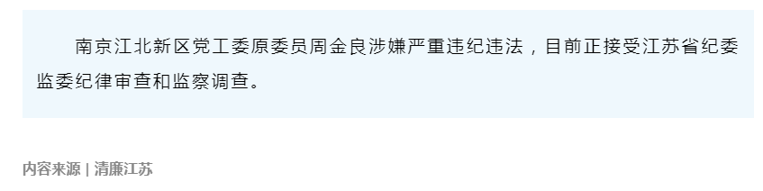 南京江北新区党工委原委员周金良接受纪律审查和监察调查