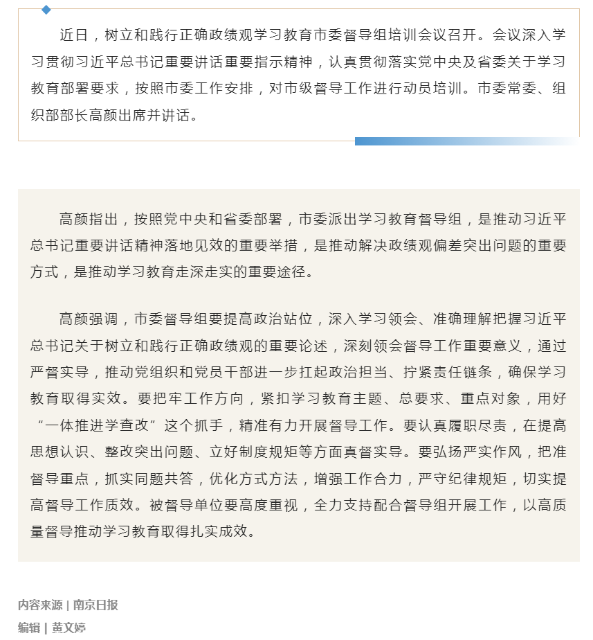 树立和践行正确政绩观学习教育市委督导组培训会议召开